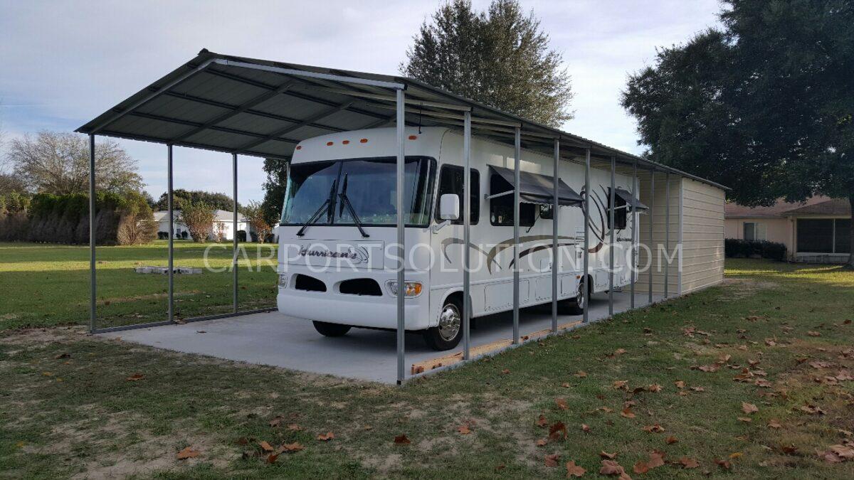 The best RV Carport is one that matches your RV’s dimensions, local weather conditions, and long term plans. Always measure your rig’s height and width, including roof fixtures and slide outs, to ensure full clearance. Steel or aluminum frames with rust resistant coatings offer durability, while vertical roof panels improve drainage during Florida’s rainy months. In areas prone to wind or storms, anchoring the carport with concrete footings ensures better stability and long term reliability.